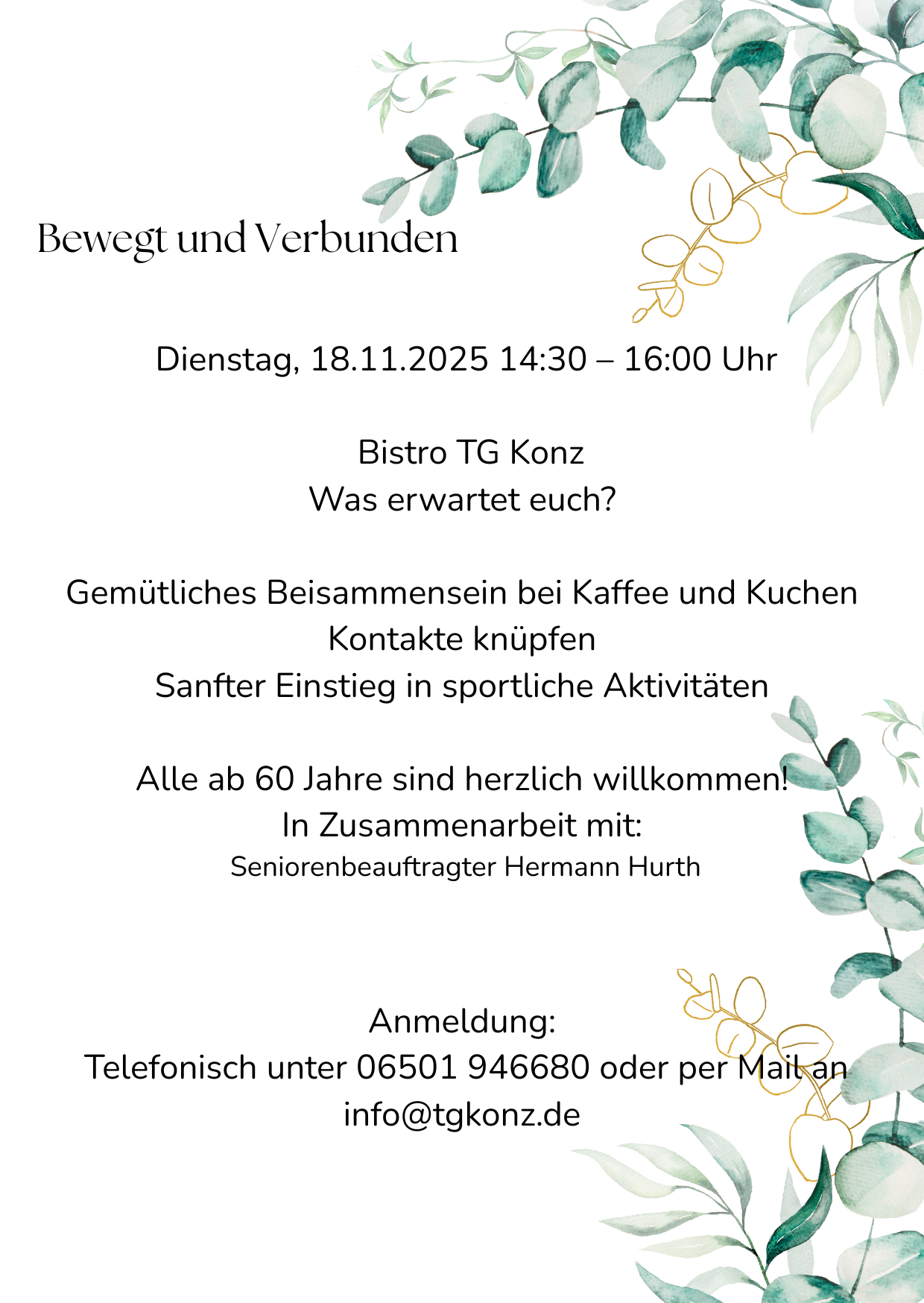 - Gemeinsam statt einsam – bewegter Spaziergang in Osburg, das Plakat mit den Terminen ab Oktober 2025 finden Sie hier, weitere Informationen und Termine unter: https://gemeinde-osburg.de/kultur-freizeit/aktivitaeten/bewegungsangebote